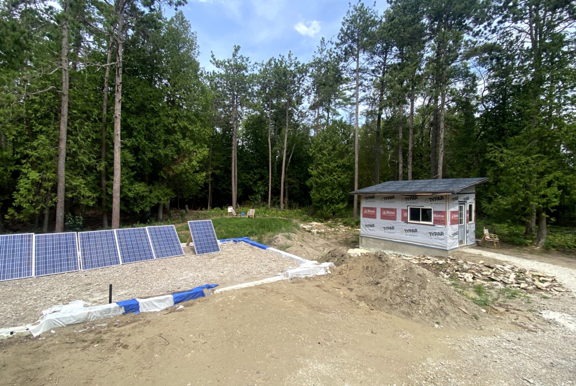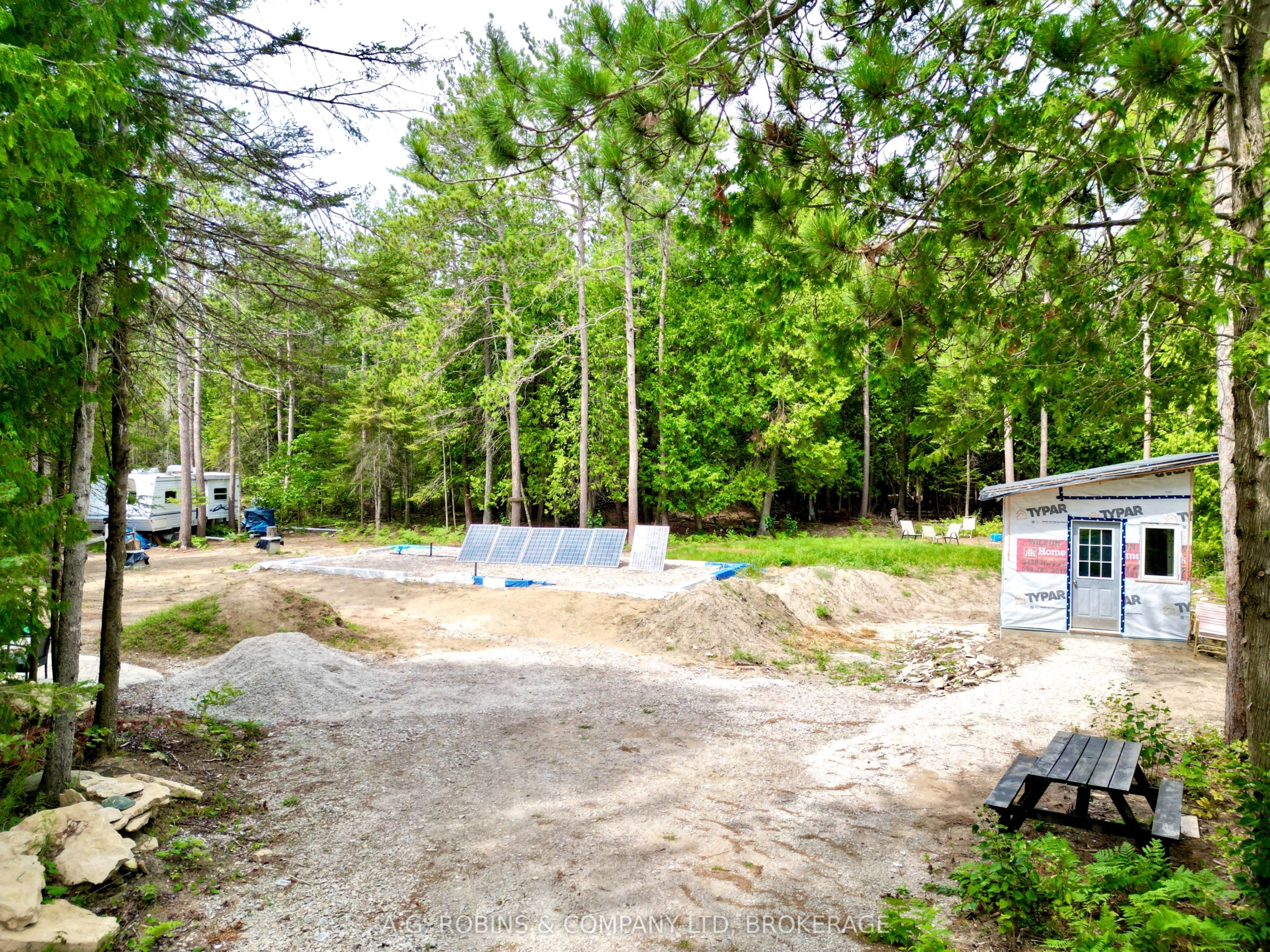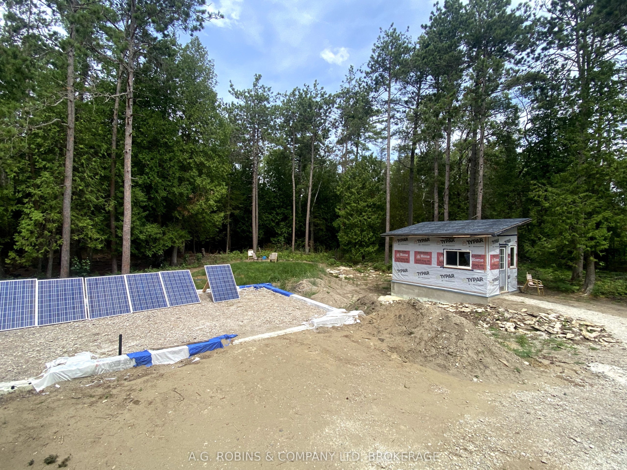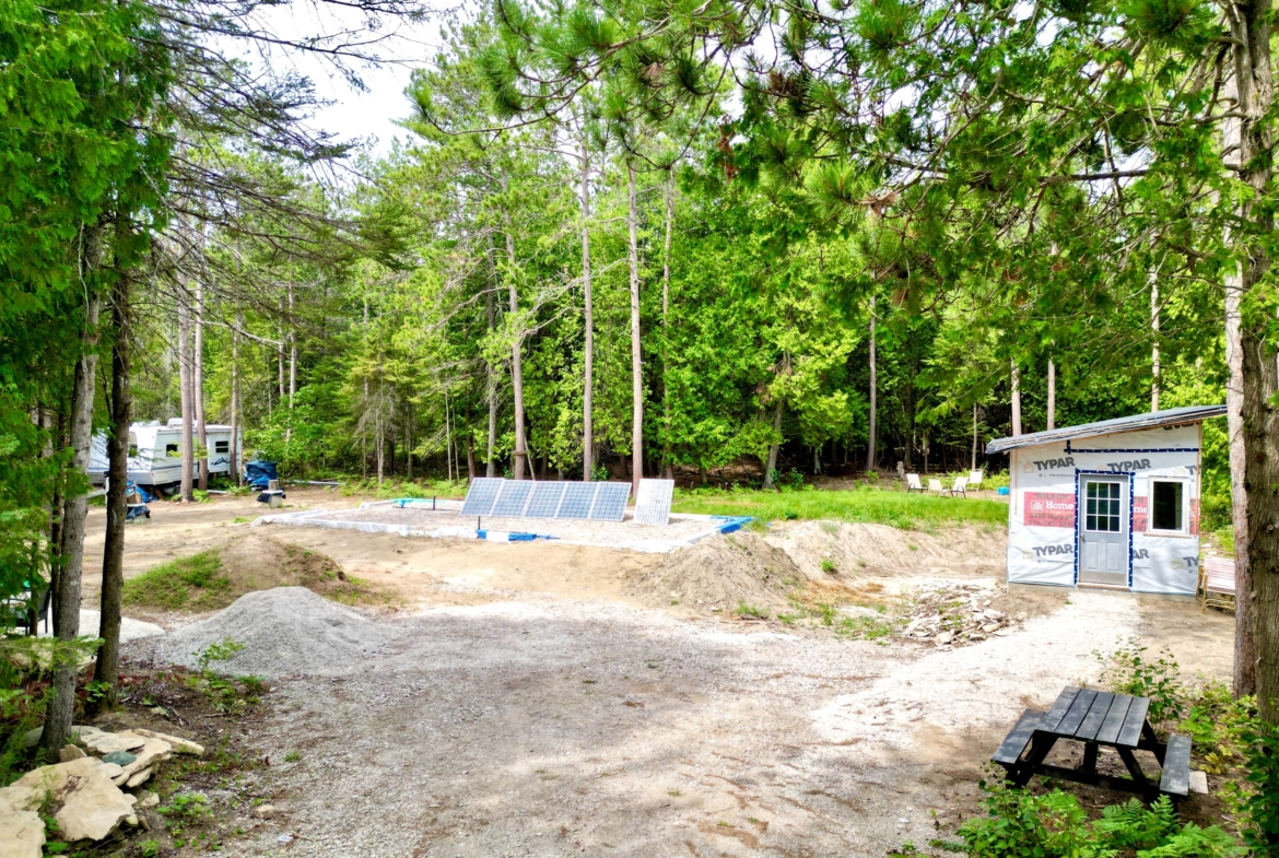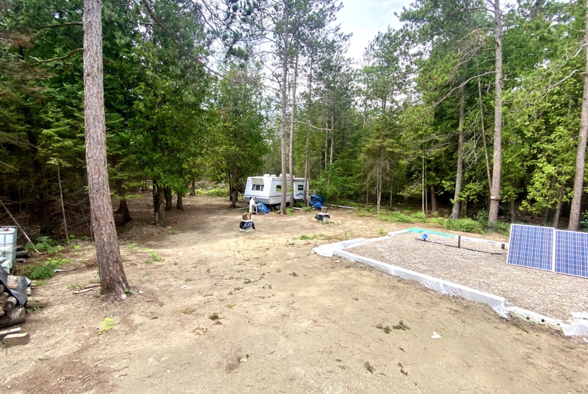 BUILD your modern OFF-GRID DREAM HOME! All the groundwork is done, you just need to add your Pre-fab kit! You could be “home” within months. Building envelope is sandy and ideal to build on. BUILDING PERMIT IS READY & PAID for a HAVN Home (havnhome.com) OR design your own. HAVN Homes are resistant to fire, can withstand extreme weather conditions, low maintenance, longer-lasting, affordable and energy-efficient, therefore perfect for life on the Bruce Peninsula! PLANS FOR THE MS-250 model are included in the sale (not Kit). FOUNDATION & POSTS are laid for a 800 sq ft MAIN FLOOR w/ garage and patio area, and a 1200 sq ft SECOND FLOOR. Main floor PLUMBING in place and inspected. In the meanwhile you can secure your tools in the 10 X 16 SHED with a 32″ crawl space, and sleep in the 2001 Dutchman Lite 26QB trailer. Class 4 Septic w/3600L SEPTIC tank already installed (2024). 75ft DRILLED WELL (2024). 16 SOLAR PANELS included. Please see survey in supplements for accurate lot dimensions.