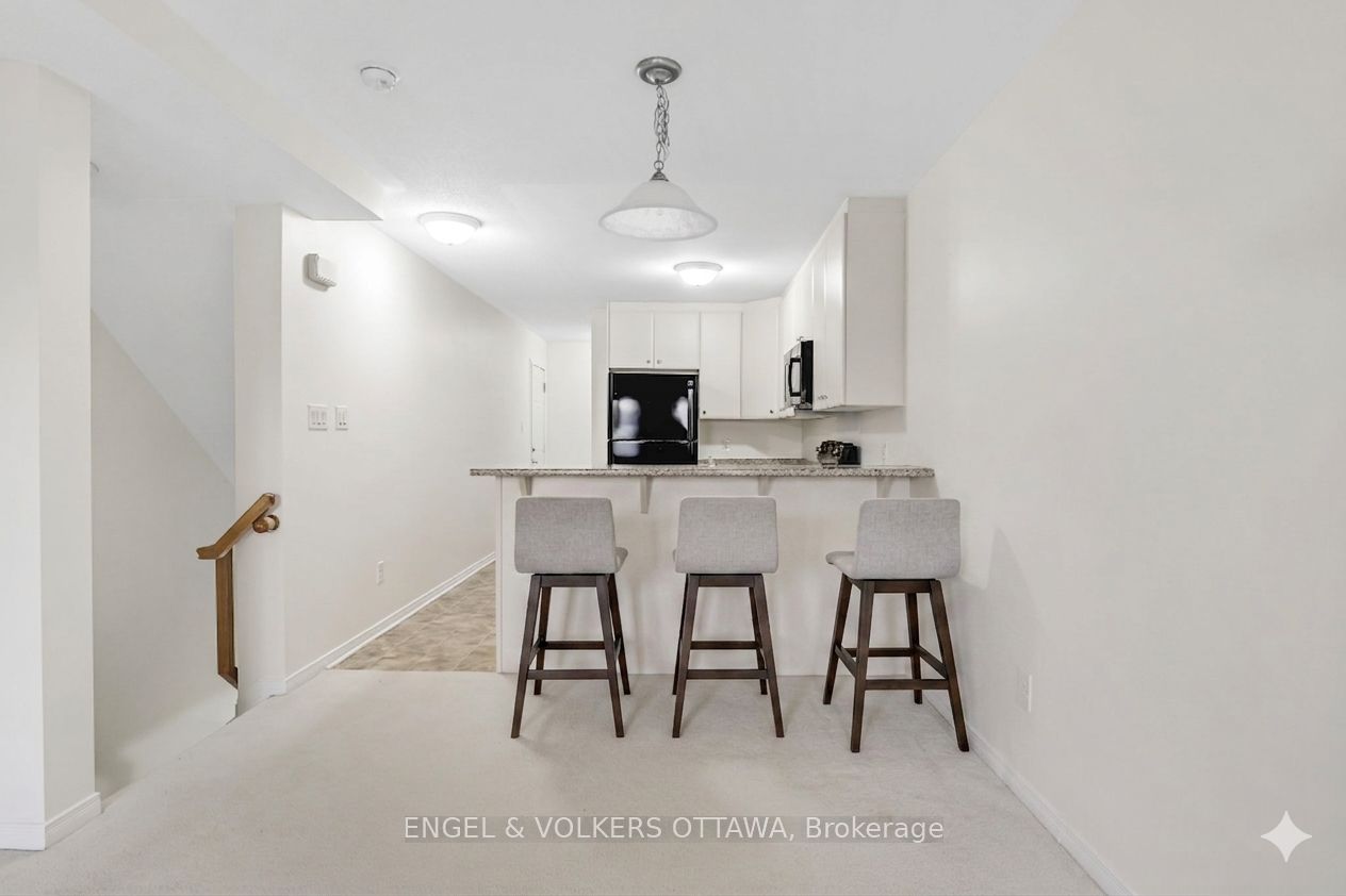 Fresh for spring and now offered at an improved price, this rare 2 bedroom, 2.5 bath stacked condo townhome in Stonebridge delivers exceptional value in one of Barrhaven’s most sought after communities. With TWO owned parking spaces and direct main level access to your parking, everyday convenience is built right in. No long walks with groceries. No stairs between you and your car. Just effortless living. Thoughtfully refreshed, freshly painted, and professionally cleaned, this bright and beautifully maintained home offers a welcoming open concept layout ideal for first time buyers, investors, or anyone seeking low maintenance living with modern comfort. The kitchen features generous counter and cupboard space, full sized appliances, and a breakfast bar overlooking the spacious living and dining area, perfect for entertaining or relaxed evenings at home. Step outside to your private deck and enjoy morning coffee, spring evenings, and summer BBQs ahead. The lower level includes two generously sized bedrooms, including a primary suite with its own private ensuite, along with a second full bathroom for added convenience. In unit laundry and additional storage enhance everyday functionality. Ideally located in the heart of Stonebridge, just moments from parks, trails, top rated schools, shopping, restaurants, the Stonebridge Golf and Country Club, and the Minto Recreation Complex all within minutes from your doorstep!
