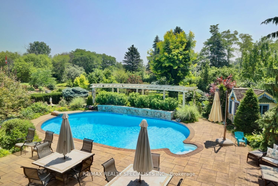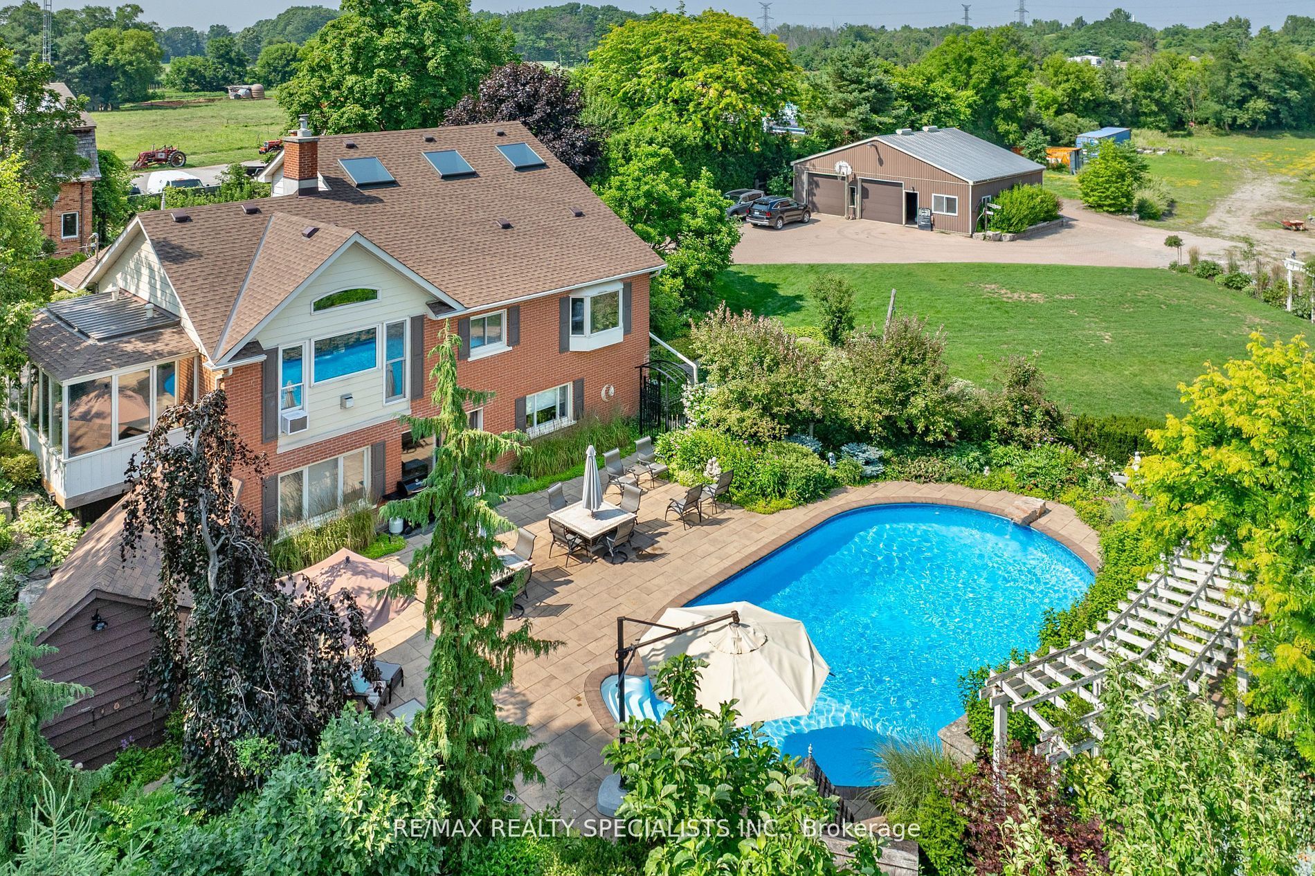 Strategic Buy Meets Lifestyle Dream: Paradise Found at 5189 8th Line – only 4 km from Eglinton/Winston Churchill intersection. A rare opportunity to own a 10-acre hobby farm on the border of Mississauga where lifestyle, privacy, and future potential converge. This fully renovated, move-in-ready bungalow with loft and walkout lower level is immaculate and practical, offering main-floor living with soaring ceilings and seamless indoor-outdoor flow. Fertile sandy loam for crops. Surround yourself with beauty: 2 acres of professionally designed perennial gardens, whimsical sculptures, and breathtaking views. Swim in the 39′ x 22′ resort-style pool with waterfalls and oversized stone deck. Host unforgettable events with parking for 100+ vehicles. Raise animals, grow organic vegetables, pursue your passions, or simply enjoy the sweet aroma of flowers and birdsong on the breeze. The 40′ x 32′ barn with 10′ double doors offers endless potential for hobbies, storage, or permitted home industry uses. Zoned A1, the property allows for: Agricultural operations Equestrian centres Home industry & home occupation Boarding kennel Horticultural use Cottage industry Cannabis production & processing Forestry use Detached dwelling Situated in Future Strategic Employment Lands, this location combines serenity today with strategic long-term value. Only 4 km to Winston Churchill & Eglinton, with easy access to shopping, health clinics, transit, community centres, and major highways. 5189 8th Line is where your dream life begins and your legacy grows. Live now. Work here. Grow equity. Own your future.