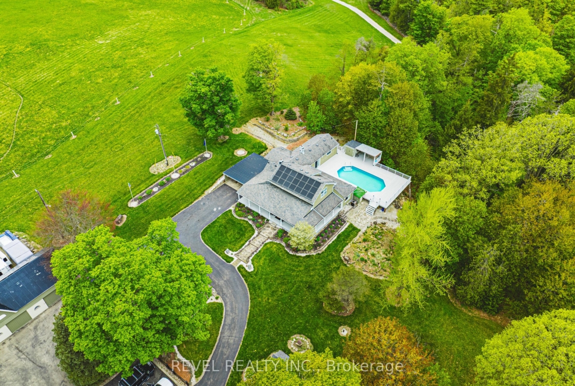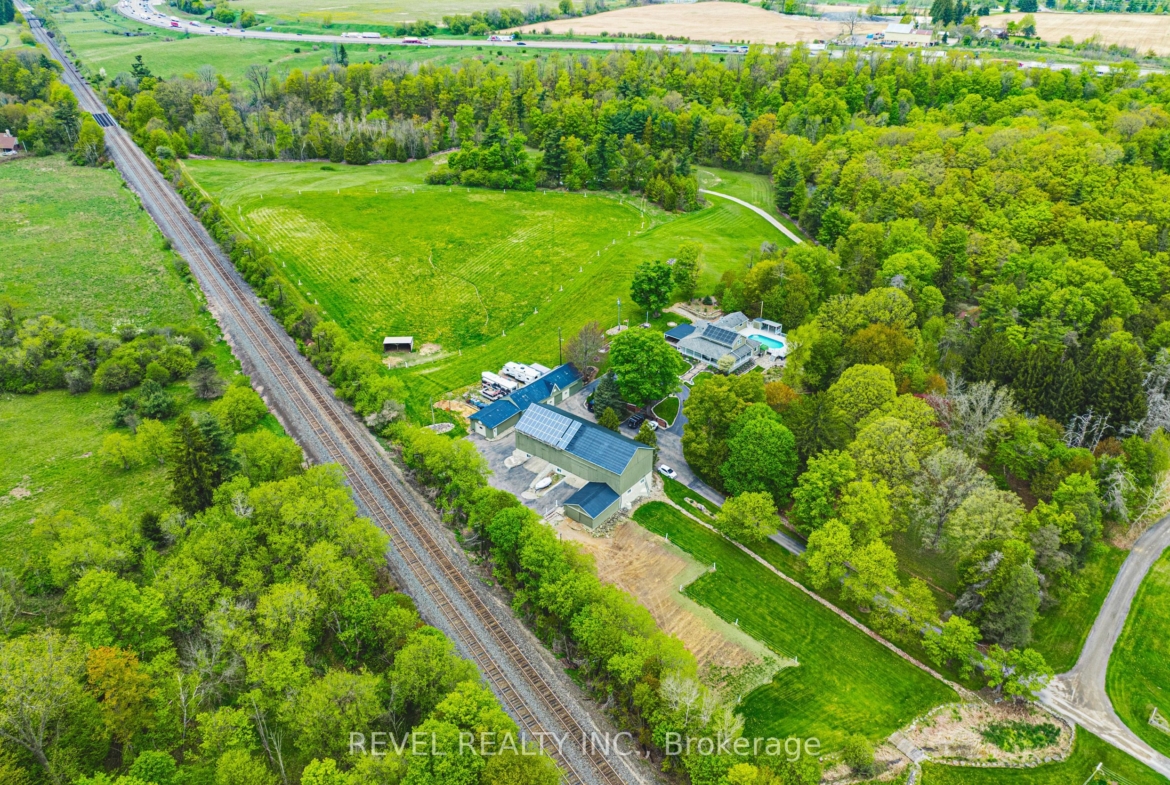 A rare opportunity to own 35 acres of scenic countryside on sought-after Appleby Line. This income-generating hobby farm features Multiple residences including a charming circa 1837 log home, with 4 bedrooms, a wrap around porch, and a pool, a 2-bed cottage overlooking 16 Mile Creek, and 3 mobile homesall with separate septic and parking. A 9-stall horse barn, rolling paddocks, heated 600 sq. ft. workshop, 3-Bay drive shed, and solar panels (approx. $13,500/yr income). The land is breathtakingrolling fields, mature trees, and a creek winding along the edge. Ideal for multigenerational living, investors, or those seeking a rural lifestyle with supplemental income. Ground source heat, solar pool heating, and proximity to Kelso, Glen Eden & Hilton Falls complete the picture. Just minutes to Milton, Burlington, and 401 access, yet a world away. Truly one of the areas most beautiful and unique properties!