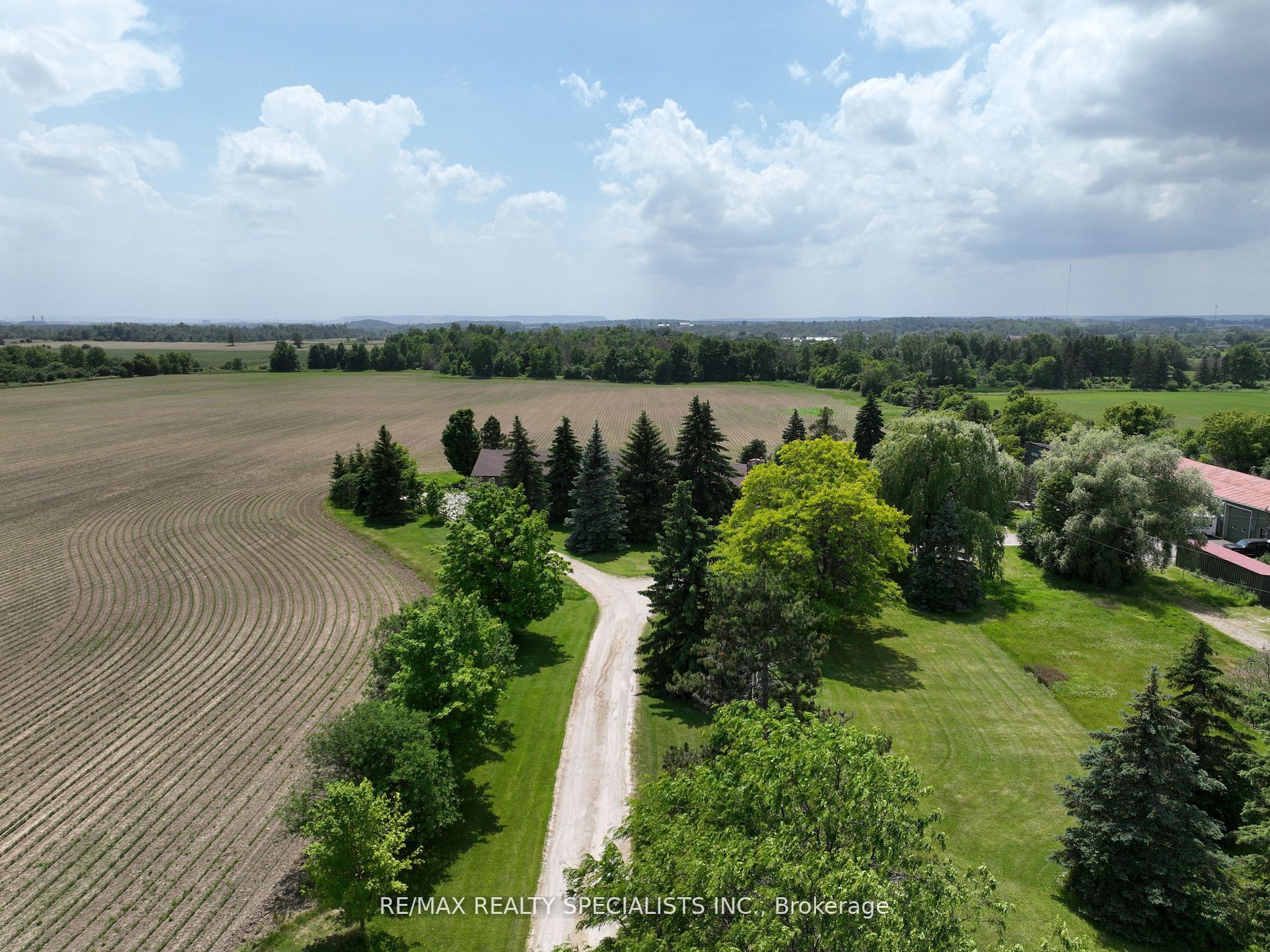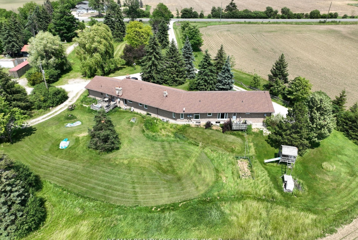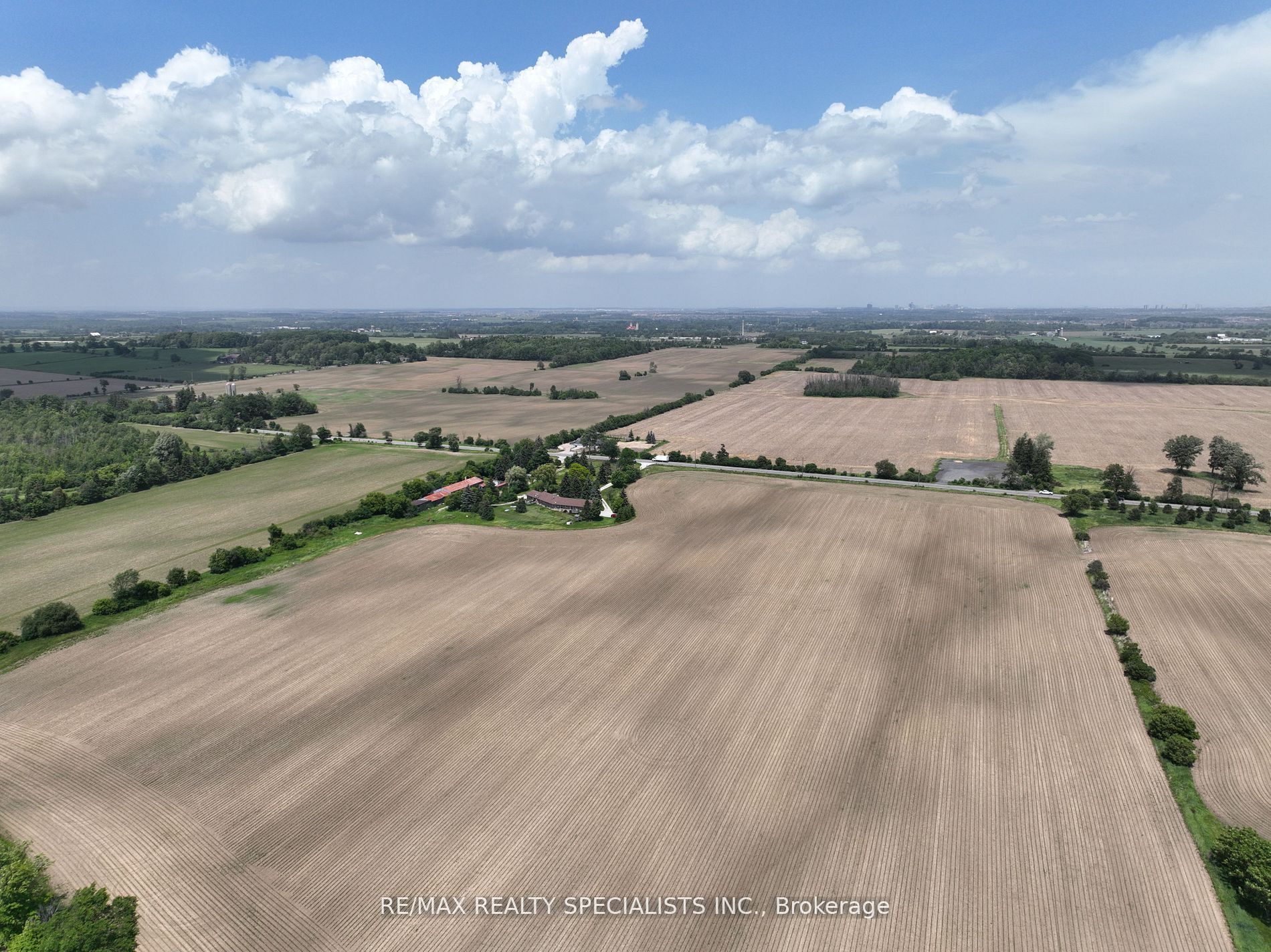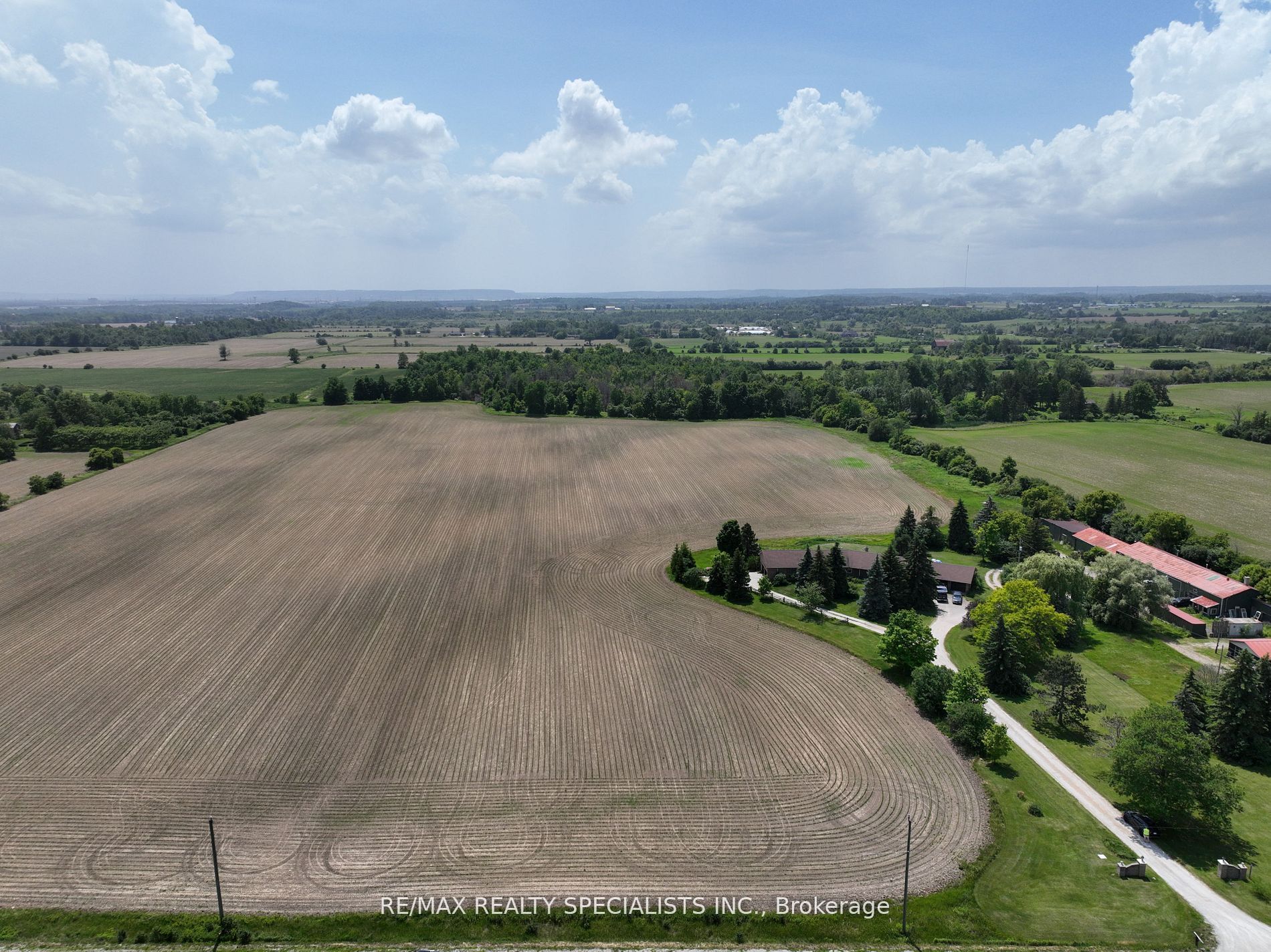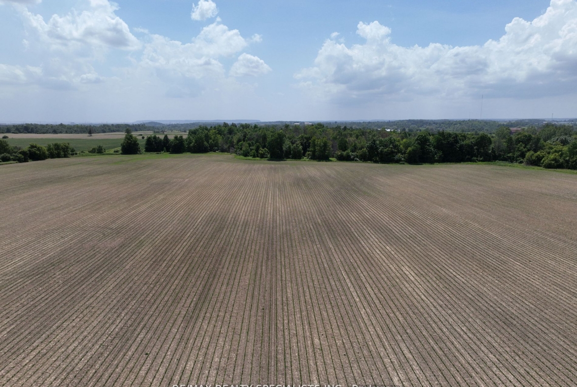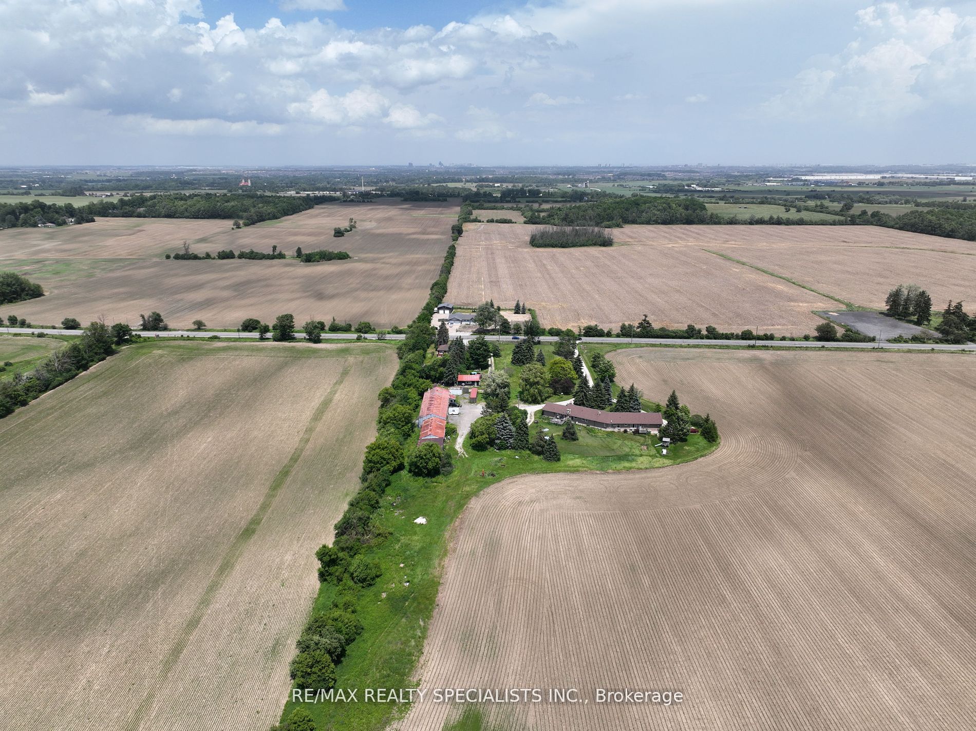51 acre farm with the view of city skyline: Square One/Mississauga high rises are clearly seen! Located 2km from Mississauga’s border, 2 km from Toronto Outlet Mall, and 1 km from the junction of three highways: Hwy 401, hwy 407 and future approved highway 413. 9th Line will be widened to 4 lanes + sidewalk + bike path in very near future. This is main artery leading to Georgetown. This land is not frozen, as Hwy 413 will veer EAST from the junction of hwy 401/407. Major builders own adjacent tracts of land. Prologis commercial structure was just launched! Manicured front lawn leads to a sprawling brick bungalow with two legal residences: newer south side residence sports a double garage, mud room/laundry room with walk out to deck, very large white country eat-in kitchen with cathedral ceilings, master bedroom with spacious semi ensuite bathroom with jetted bathtub and separate shower. Two more bedrooms. Northside residence has a huge country kitchen, living room with cathedral ceilings and two bedrooms. Beautiful covered porch and a double garage. Ample parking. Large deck and back gardens overlooking farmland and wood stand. Landscaped garden surrounds both houses. There is a saloon themed summer bar in the shade of tree stand. 2000 S.F. shop provides room for business or additional garages. Two new oil tanks in 2016. Well water is plentiful thanks to an underground aquifer to the north at 5th SDRD. Land bankers, investors park your $$$. Farmland is rented to gentleman farmer for soybeans and corn. Both houses rented. If you are looking to build a family compound of unrestricted size and grow your own organic food, while living right in between Mississauga, Oakville, Milton and Georgetown and THREE major highways then you have found the best place ever!